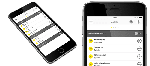 Gratuite et intuitive, l'application AirKey-App est compatible avec les iPhone (à partir de iOS 10) et les smartphones Android 5.0. Elle transforme votre smartphone en clé ou en plusieurs clés pour différentes installations. L'application AirKey-App vous permet en plus de créer et d'actualiser d'autres supports d'accès, comme des cartes ou des porte-clés. Le code Pin optionnel est une protection supplémentaire pour l'application.