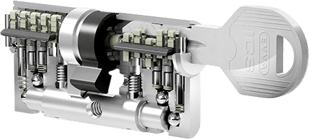 Les pistons en acier au chrome-vanadium dans le rotor du cylindre offrent en combinaison avec la nervure en acier du profil européen une protection anti-arrachement, conforme à la norme.