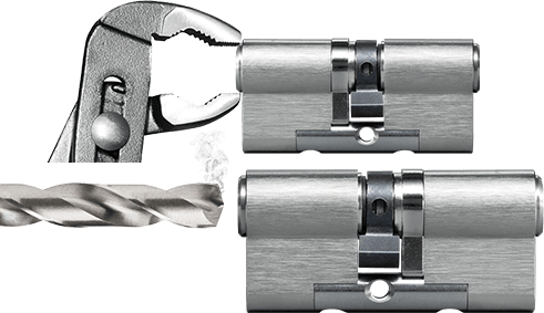 Les éléments en acier au chrome-vanadium dans le cylindre ICS le protègent contre les techniques d'ouverture destructrices. Des éléments de sécurité supplémentaires offrent une grande résistance aux attaques.